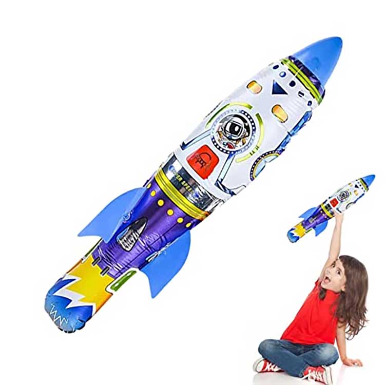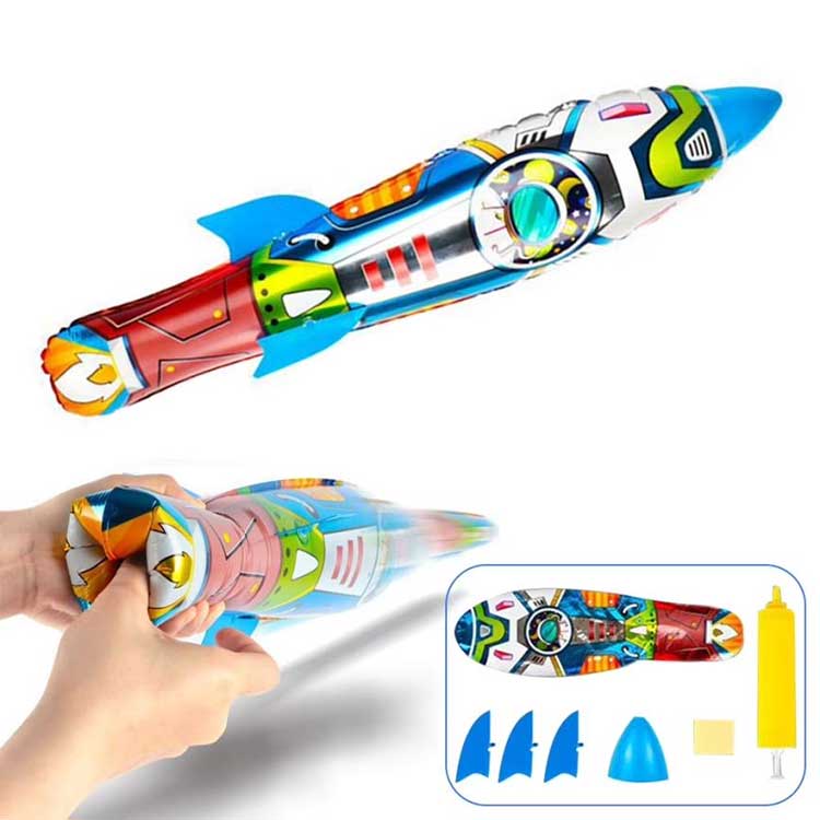 3D rocket foil balloon throwing inflatable din napaka-flexible sa mga tuntunin ng paglalaro; hindi ito nangangailangan ng kuryente, itapon lamang ito sa pamamagitan ng kamay para sa lakas ng paglipad. Upang gawing malayo ang rocket, ang lahat ay nakasalalay sa kung gaano kataas ang hawak mo at kung gaano karaming puwersa ang iyong ginagamit sa paghagis nito, mas maraming puwersa at mas mataas ang hawak mo, mas malayo ito lilipad.