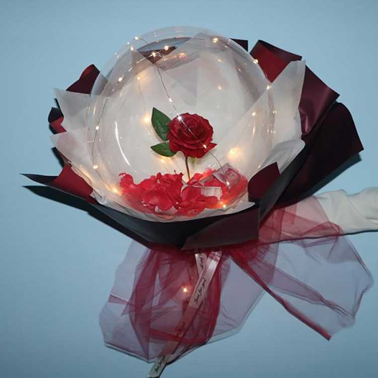 Ang BOBO Balloonay hindi kapani-paniwalang atmospera:Nagtatampok ng mga transparent na BOBO balloon, naka-embed na mga rosas, at mga LED na ilaw, ang set ay lumilikha ng maliwanag at romantikong visual effect. Ang mga LED na ilaw ay nagbibigay din ng malambot na ningning, na ginagawa itong mahalagang regalo para sa Araw ng mga Puso, anibersaryo, kaarawan, pagtatapos, at Araw ng mga Ina.