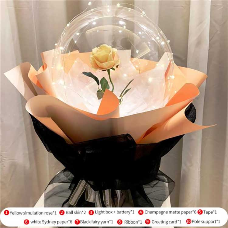 Maaaring mapanatili ng mga balloon ng BOBO ang kanilang hugis nang humigit-kumulang isang buwan pagkatapos ng inflation. Ang mga artipisyal na rosas ay matibay at maaaring magamit bilang mga dekorasyon sa muwebles. Ang mga string light ay nababakas at maaaring gamitin para sa pag-iilaw ng silid. Nagpapatakbo ka man ng pisikal na tindahan ng bulaklak, tindahan ng regalo, o tindahan ng alahas, o kahit na stall sa isang parke o palaruan, ang BOBO Balloon Rose Sets ay mahuhusay na pinakamabentang produkto. Ang mga nag-iilaw na rosas ay talagang kaakit-akit sa mga customer, na nag-aalok ng malaking halaga para sa pera at nagdadala ng maraming magagandang alaala at emosyonal na halaga, na ginagawa itong iyong nangungunang pagpipilian.