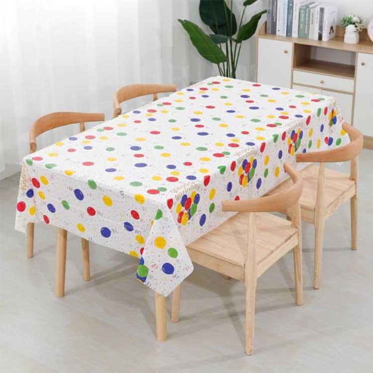 Mga pattern na estilo: Upang matugunan ang mga tiyak na pangangailangan ng mga kaarawan at pista opisyal, nag-aalok kami ng iba't ibang mga disenyo, kabilang ang mga guhitan, polka tuldok, florals, at cartoons.Printed na may tinta na friendly na tinta, ang mga kopya na ito ay masigla, lumalaban, at tumpak, na may malulutong, malinaw na mga gilid. Halimbawa, para sa isang kaarawan ng kaarawan, pumili ng isang makulay na pattern ng cartoon na may mensahe na "Maligayang Kaarawan." Para sa isang Christmas party, pumili ng isang pula at berde na pattern upang buhayin ang kapaligiran at ibahin ang talahanayan sa isang tunay na naka -istilong hitsura. Bilang karagdagan, ang aming mga magagamit na tablecloth ay dumating sa isang malawak na hanay ng mga sukat, mula sa 120cm x 180cm (angkop para sa mga maliliit na talahanayan na nakaupo sa 4-6) hanggang 180cm*240cm (angkop para sa mahabang mga talahanayan na nakaupo sa 8-10). Ang mga sukat na ito ay sumasakop sa mga karaniwang sukat ng talahanayan, at maaari rin nating ipasadya ang mga ito upang matugunan ang mga pangangailangan ng iba't ibang mga setting, tulad ng mga tahanan, restawran, at mga lugar ng kaganapan.