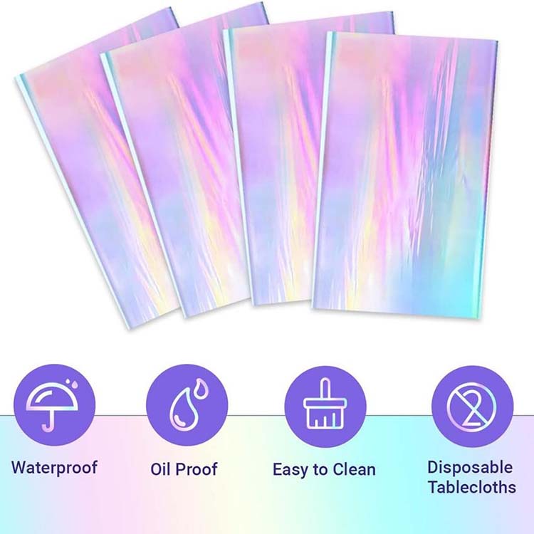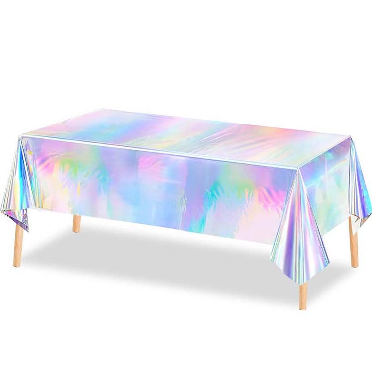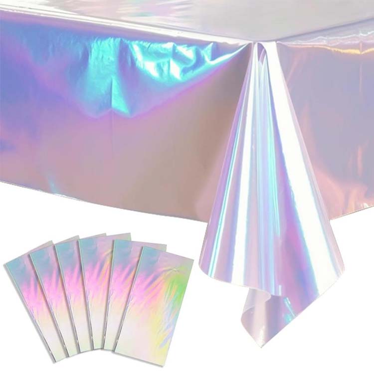 LaserDisposable Tablecloth: Sa pamamagitan ng multi-layer optical film composite na teknolohiya, nakamit ang isang 360 ° holographic na mapanimdim na epekto. Ang pinakamahusay na nagbebenta ng "Rainbow Laser Tablecloth" ay nagpatibay ng isang karaniwang sukat na 54x108 pulgada, na maaaring lumikha ng isang pakiramdam ng ilaw at daloy ng anino sa mga eksena ng partido, at ang rating ng gumagamit ay 4.7 bituin (mula sa 5 bituin).