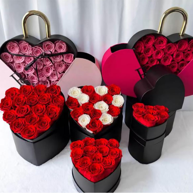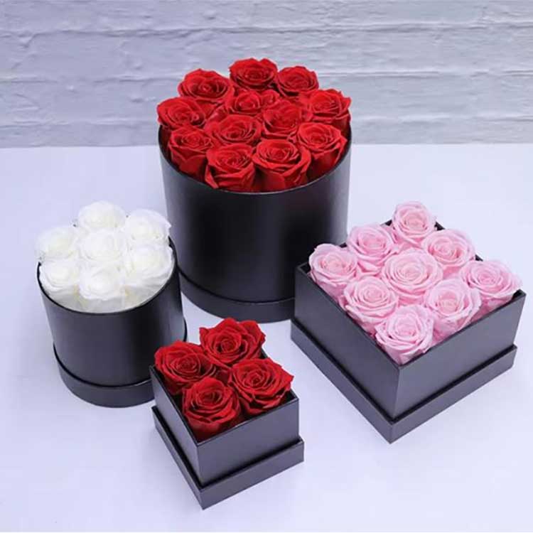 Pag-customize ng Bulaklak: Maaari mong piliin ang grado at dami ng mga bulaklak na gusto mong i-customize. Sa pangkalahatan, kung mas mataas ang grado, mas maraming bulaklak ang gusto mo. Mas mataas ang presyo ng kahon ng regalo.