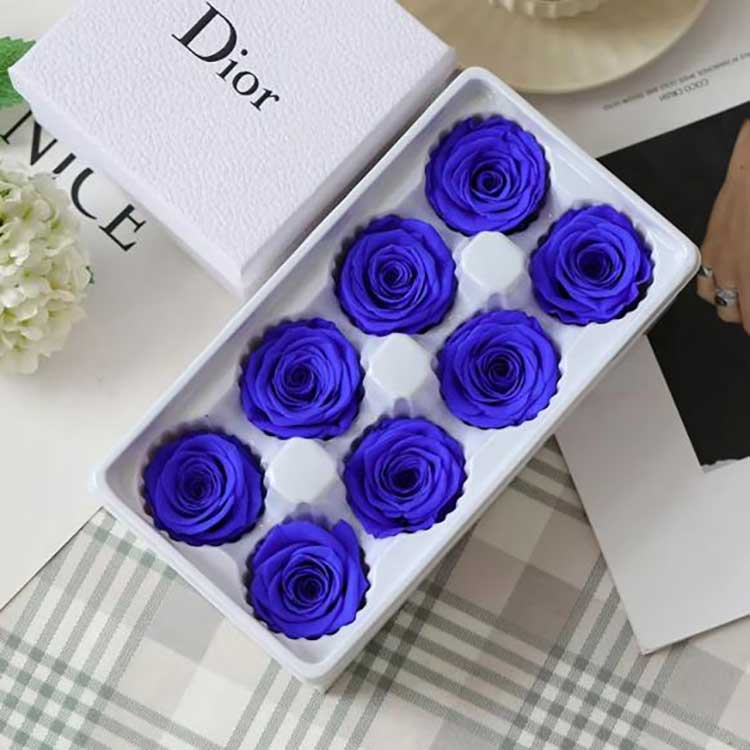 Ang mga rosas ay namarkahan sa tatlong antas: A, B, at C. Ang mga rosas ng Grade A ay mas malaki at mas puno. Ang aming Everlasting Flower 8 na bulaklak na Rose Gift Box ay gawa sa mga Grade A na rosas. Ang mga sukat ng kahon ng regalo ay 24cm*13cm*8cm. Ang bawat kahon ay tumitimbang ng humigit-kumulang 150g. Shelf life ng napreserbang mga bulaklak: 3-5 taon sa ilalim ng normal na kondisyon ng imbakan, na mas kapaki-pakinabang sa iyong mga benta.
