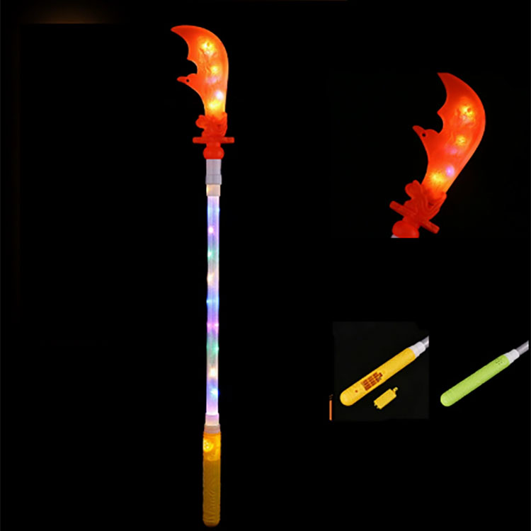 Ang kumikinang na laruang sandata ay ang pinakamabentang produkto ng Newshine. Pinili ng pangkat ng Newshine ang pinakasikat na mga modelo ng armas para sa seryeng ito ng mga produkto. Kabilang dito ang: ang curved broadsword, ang Celestial Axe, ang Fire Lance, ang Golden Staff ni Sun Wukong, ang Trident of Aquaman, at iba pa. Tinukoy namin ang mga modelo ng mga sandatang ito at isinama ang mga elemento ng cartoon upang gawing mas angkop ang mga ito para sa kategorya ng laruan.