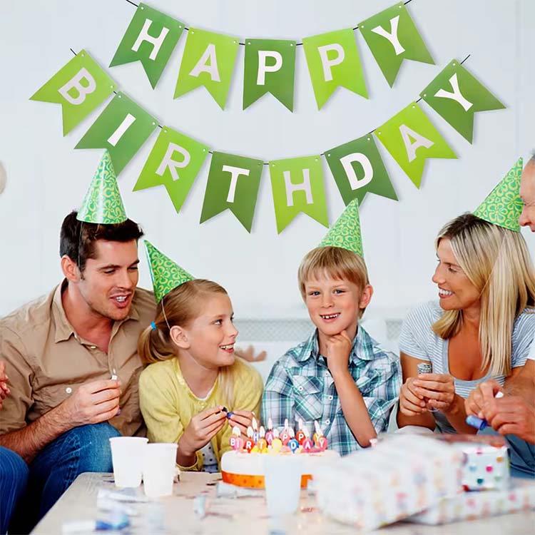 AngMaligayang Basura ng Kaarawanay isang produktong banner na ginamit para sa dekorasyon at paglikha ng isang kapaligiran, karaniwang nakalimbag sa mga salitang "Maligayang Kaarawan" o isinapersonal na nilalaman. Marami itong disenyo, kabilang ang iba't ibang mga tema tulad ng pagtatapos ng panahon, Araw ng Ina, Araw ng Ama, at Araw ng Buwan. Dumating din ang watawat sa iba't ibang wika, tulad ng Espanyol at Ingles. Maaari itong mapahusay ang kapaligiran at palamutihan ang partido.
