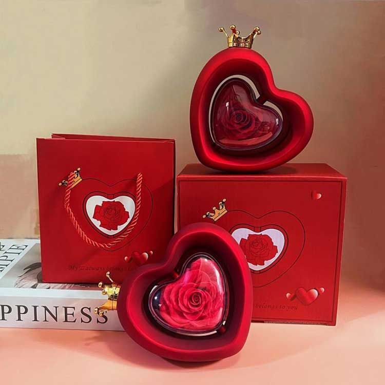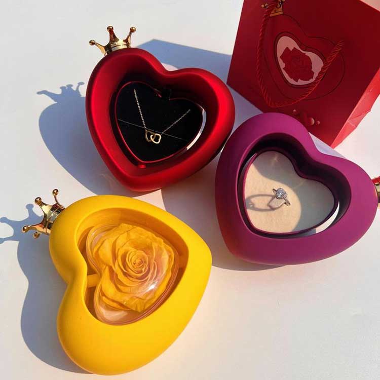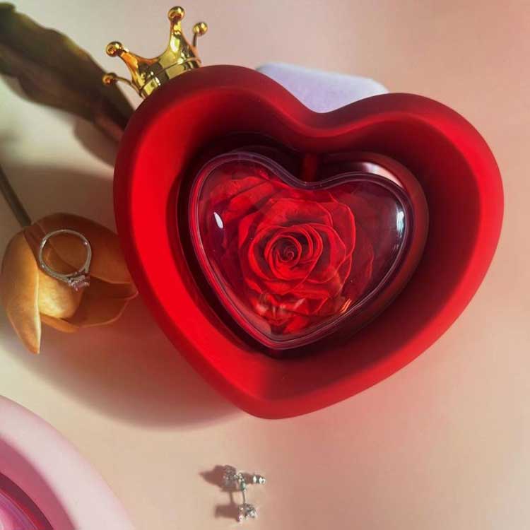 Ang Heart Shape Rose Jewelry Box ay gumagamit ng grade A na napreserbang mga bulaklak, na ang kulay at texture ay hindi naiiba sa mga sariwang bulaklak.