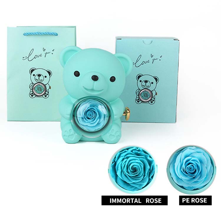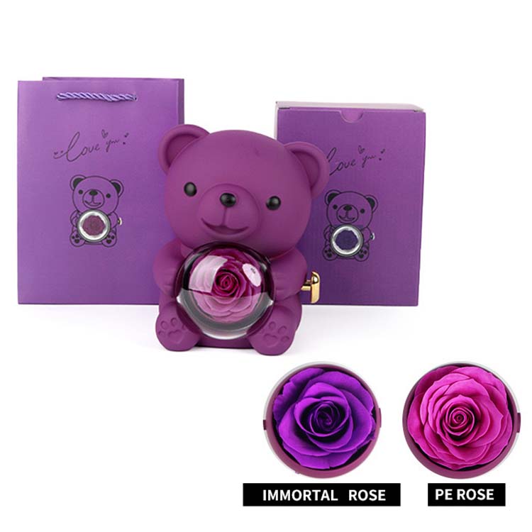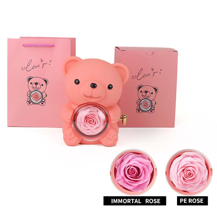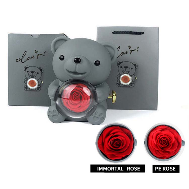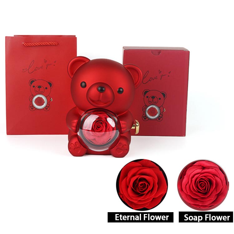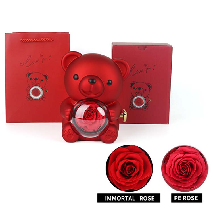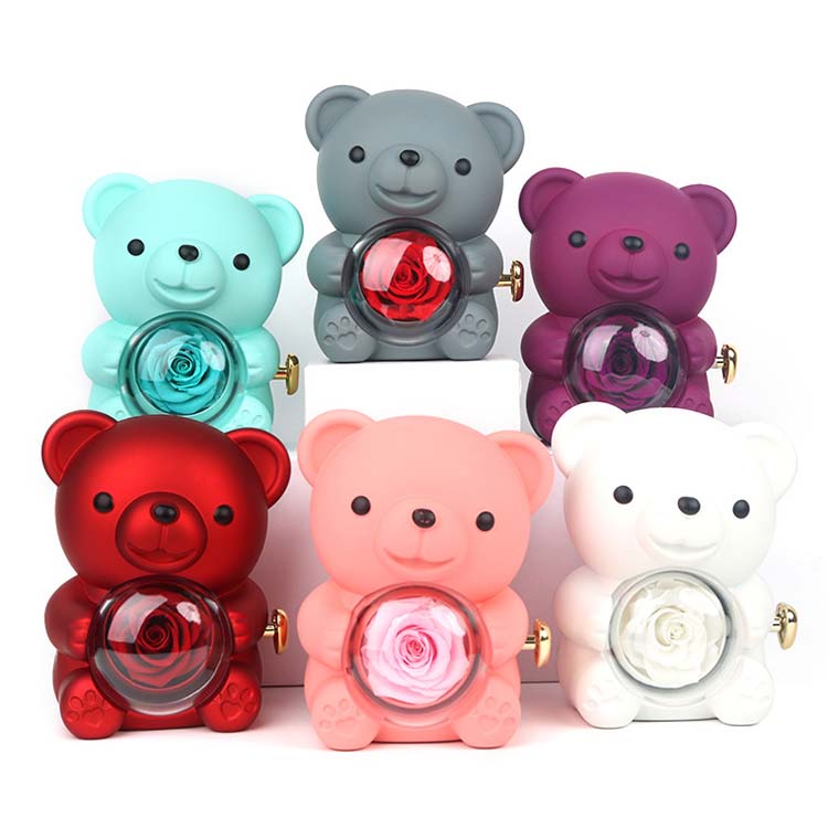 Ang Hug Bear na umiikot na napanatili na bulaklak na kahon ng alahas na matatag, mahirap at makapal, hindi madaling madurog o mabulok, na may perpektong pandekorasyon at pagiging praktiko.