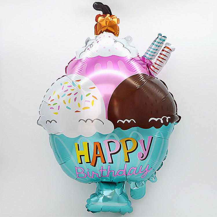 Mga lobo ng foil ng sorbetesay parang buhay at cute sa hugis ng sorbetes. Maraming mga estilo tulad ng cones, sundaes, popsicles, atbp, na parang ang masarap na sorbetes ay solidified sa lobo. Ang mga lobo ay may iba't ibang laki upang matugunan ang iba't ibang mga eksena at mga pangangailangan sa dekorasyon. Kung ito ay isang maliit at katangi-tanging dekorasyon sa desktop o isang buong eksena na dekorasyon para sa isang malaking partido, maaari mong mahanap ang tamang sukat.