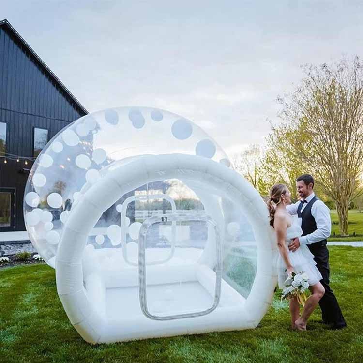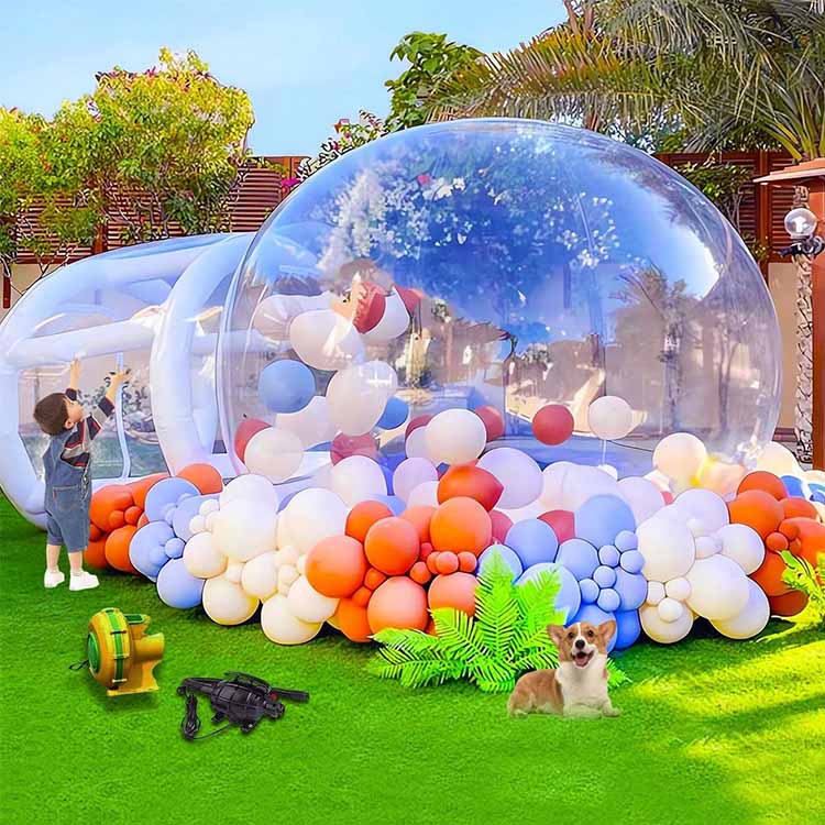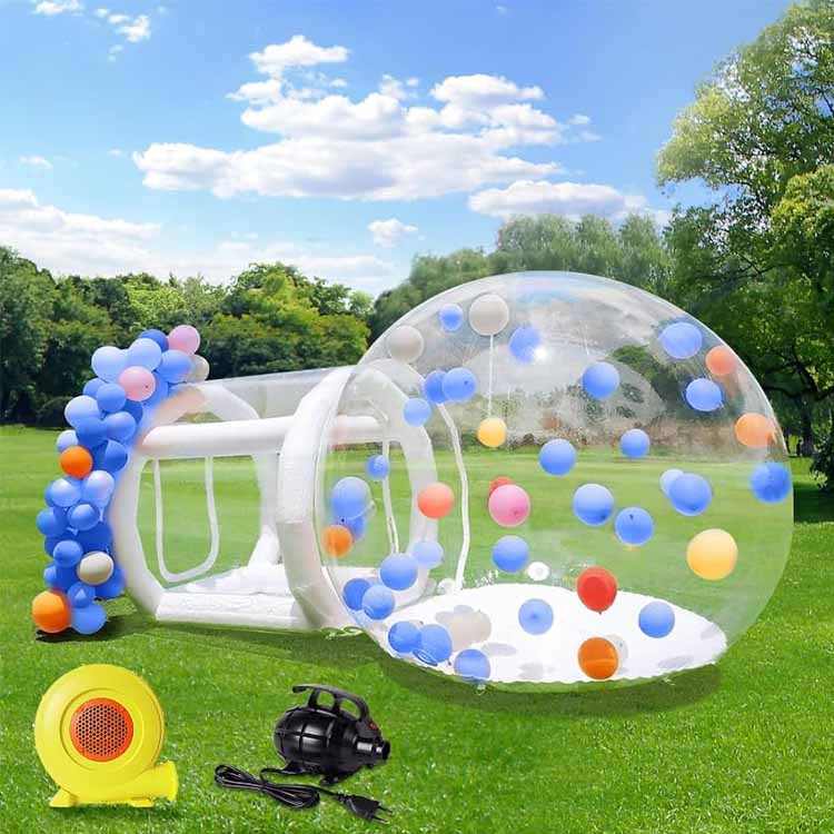 Maraming mga estilo ngInflatable bubble houseUpang pumili mula sa, kung ito ay isang solong pangunahing modelo o isang estilo na may mga espesyal na tampok tulad ng isang channel na may hawak na paghinga at isang trampolin, ay idinisenyo upang ganap na matugunan ang iyong mga pangangailangan sa tirahan, paglilibang, libangan, komersyal na pagpapakita, atbp.