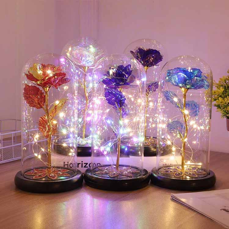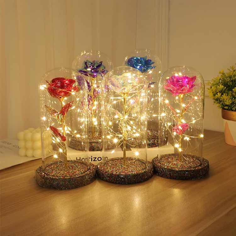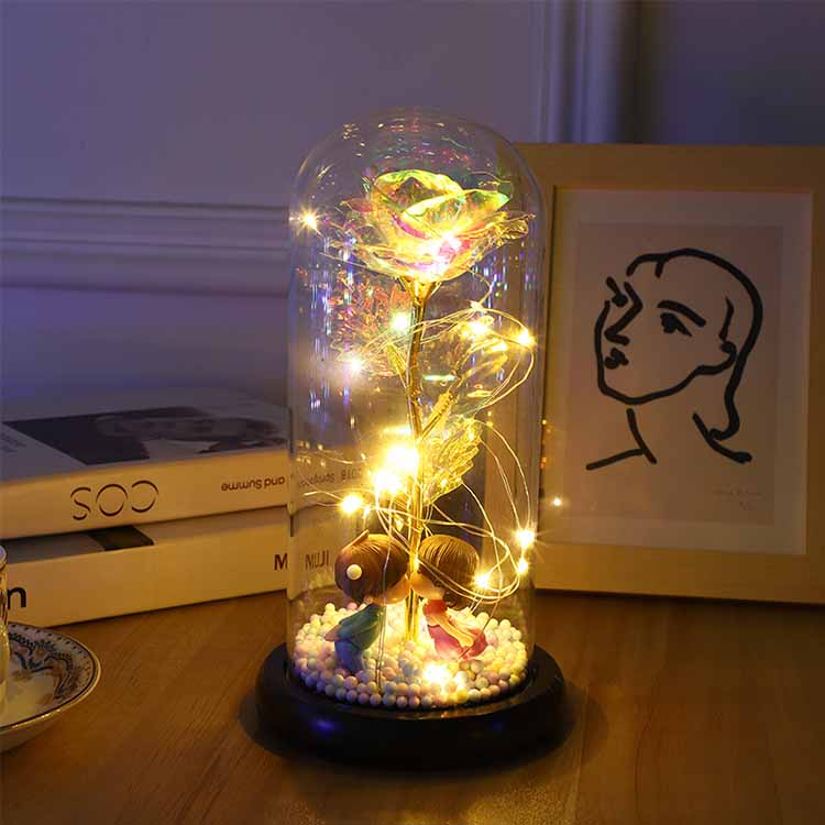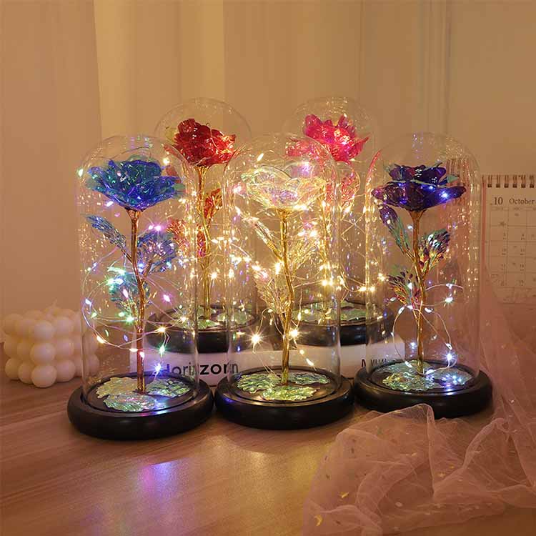 Ang LED 24k glass ay tumaas sa loob ng proteksiyon na pambalot, marami kaming mga manika at laruan. Maaaring piliin ng mga customer ang kanilang mga paboritong manika at ang kulay ng mga bulaklak na gusto nila. Maaari naming ipasadya ang mga ito ayon sa iyong mga kinakailangan.