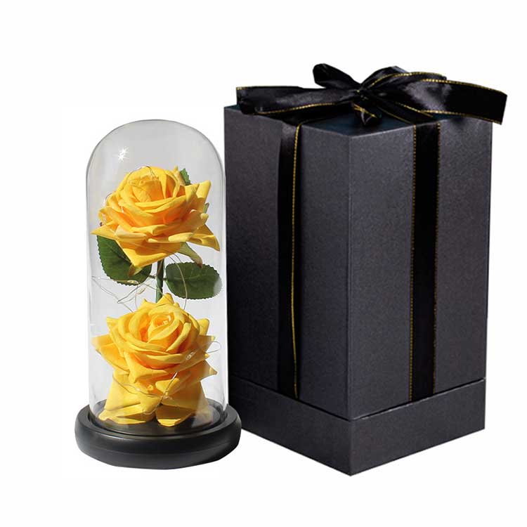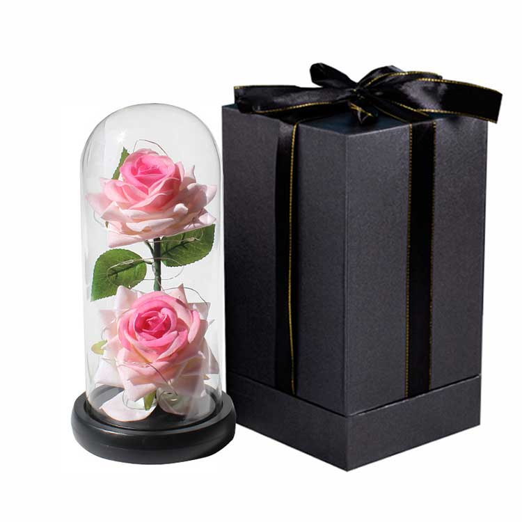 Gumagamit kami ng foam packaging sa loob ng luminous galaxy rose para protektahan ang glass dome. Ang panlabas na packaging ay may kasamang karaniwang itim o pink na kahon at isang high-end na itim na kahon ng regalo. Maaaring piliin ng mga customer ang kanilang gustong packaging; nagbibigay-daan ang premium packaging para sa mas mataas na presyo ng pagbebenta at mas malaking kita.