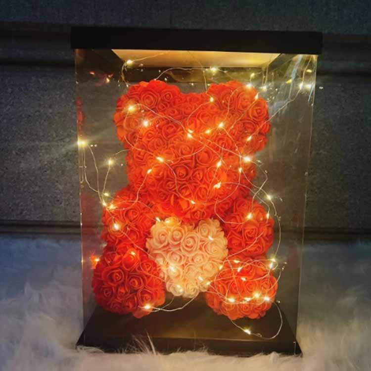 Ang napanatili na rosas na oso ay gawa sa imitasyon ng mga tunay na rosas. Matapos ang espesyal na paggamot, pinapanumbalik nito ang natural na kulay at texture ng mga bulaklak, at may mas mahabang buhay sa istante.